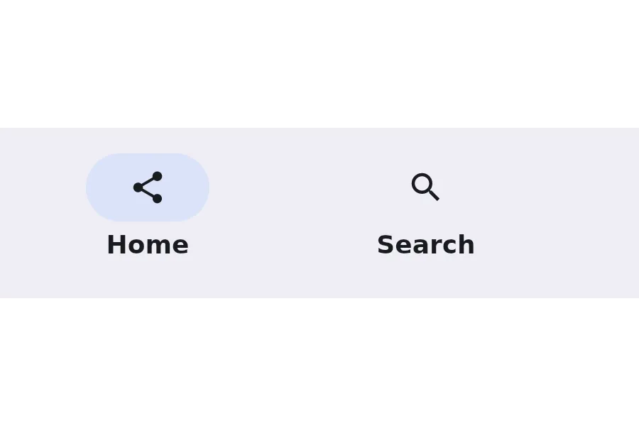 import { NavigationBar } from "@material";export component Example inherits Window { width: 400px; height: 200px; background: transparent; NavigationBar { width: parent.width; height: 80px; items: [ { icon: @image-url("../icons/share.svg"), text: "Home" }, { icon: @image-url("../icons/search.svg"), text: "Search" }, { icon: @image-url("../icons/settings.svg"), text: "Settings" } ]; }}slint