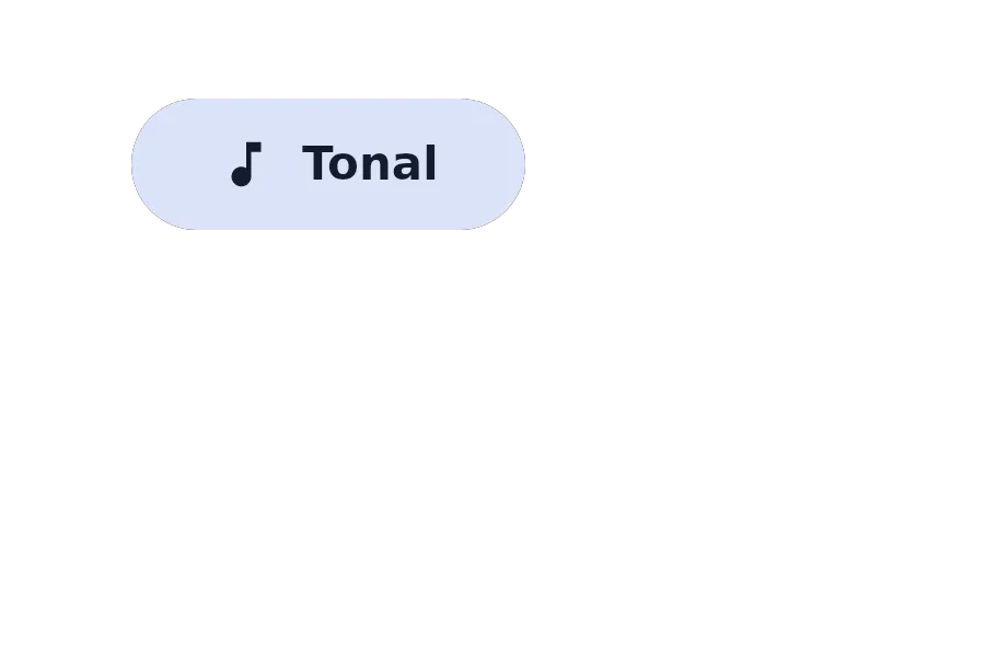 import { TonalButton } from "@material";export component Example inherits Window { width: 200px; height: 100px; background: transparent; TonalButton { text: "Tonal"; icon: @image-url("../icons/music_note.svg"); width: 120px; height: 40px; }}slint